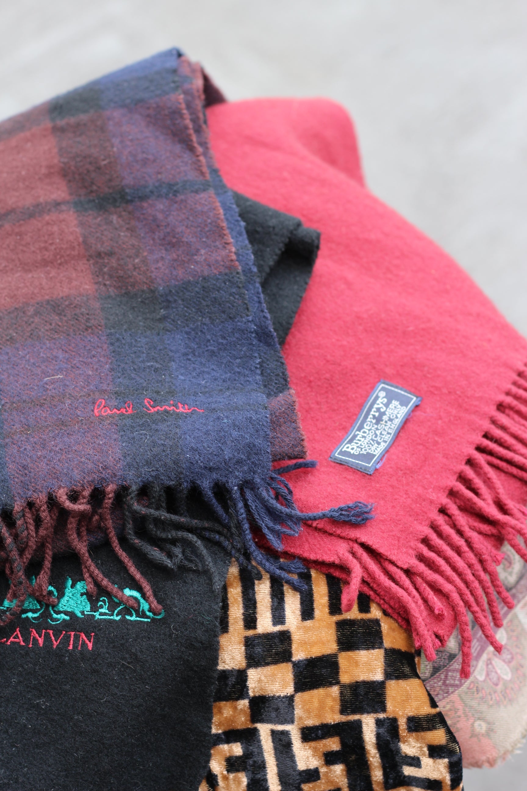 | □商品コメント | ブランドマフラー5点セットです。バーバリーやポールスミス、ランバン等のハイブランド・デザイナーズマフラーセット。カシミヤ混など上質な素材感とブランドロゴが再販時の強い訴求力になります。客単価アップに直結する、冬の主力仕入れアイテムです。 |