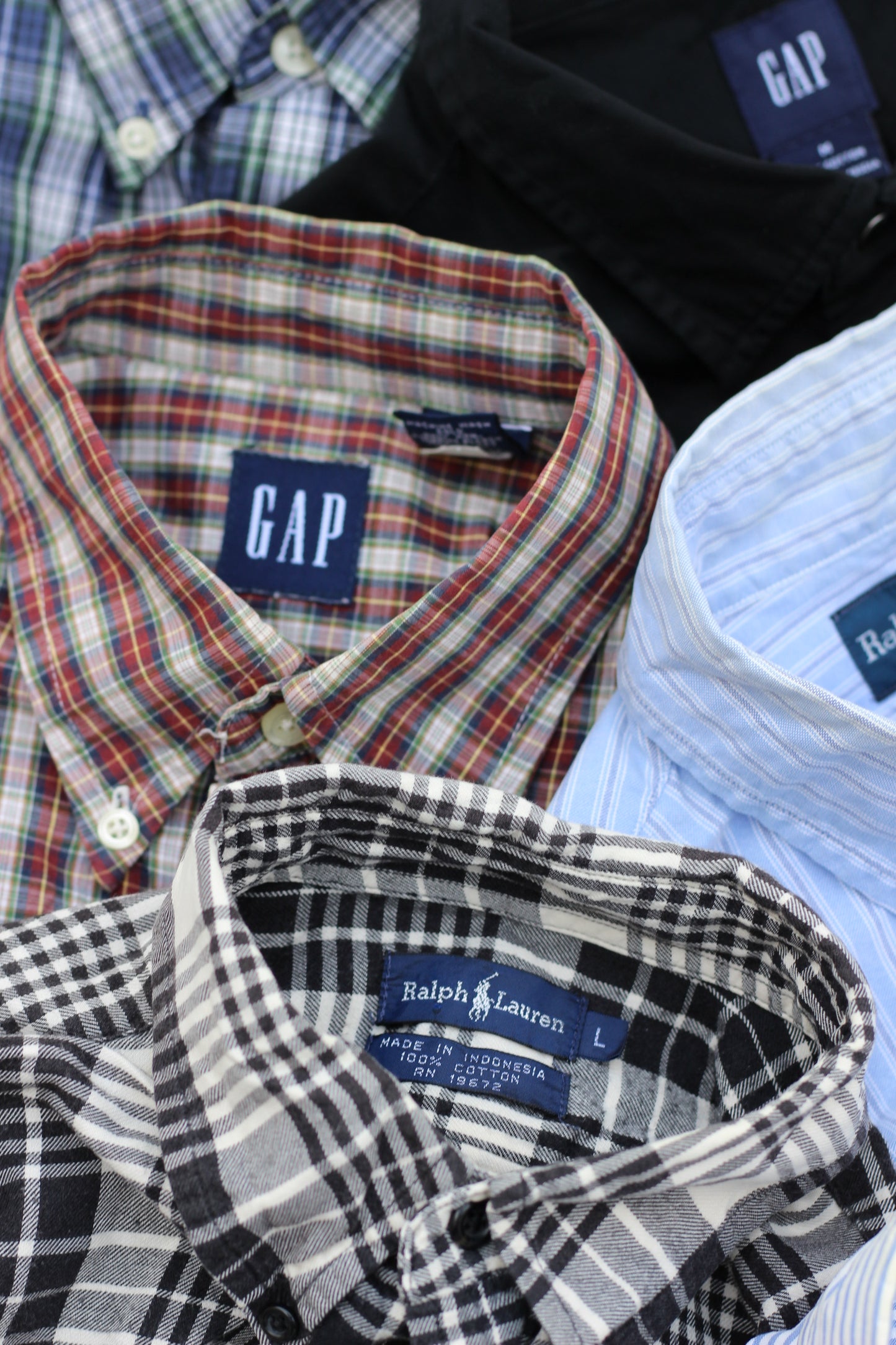 □商品コメント | メンズ USA ブランド 長袖シャツを7点セットで販売いたします。ギャップ、ラルフローレン、ティンバーランドなどが含まれます |