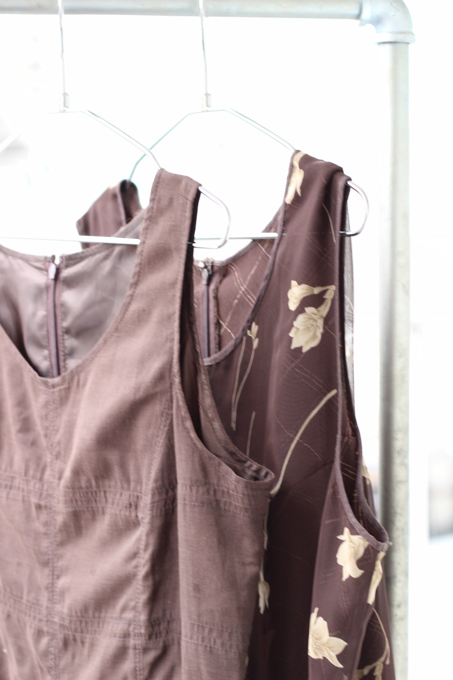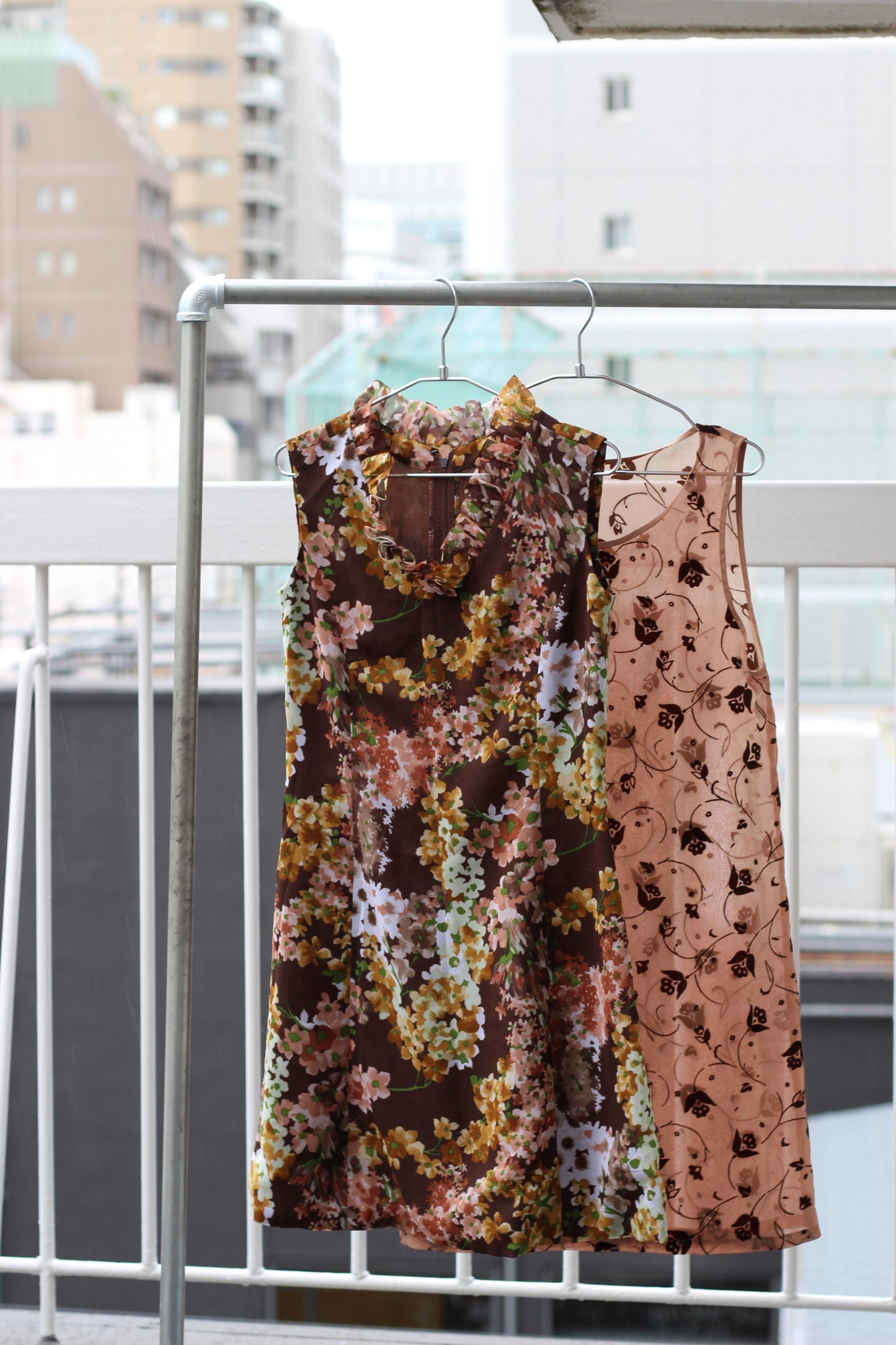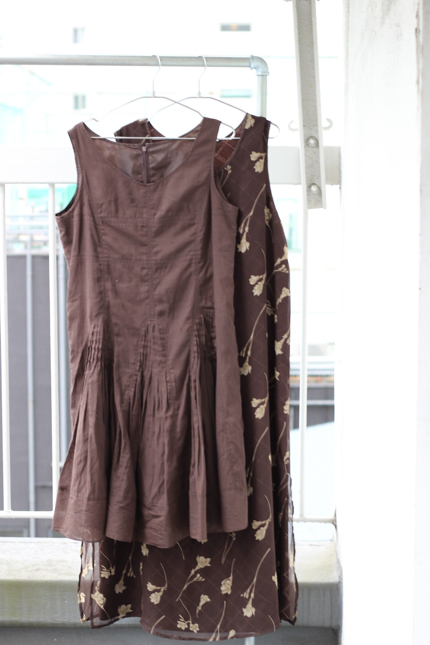 ヴィンテージ ブラウン フラワーデザイン ノースリーブワンピースを5点セットで販売いたします。 |