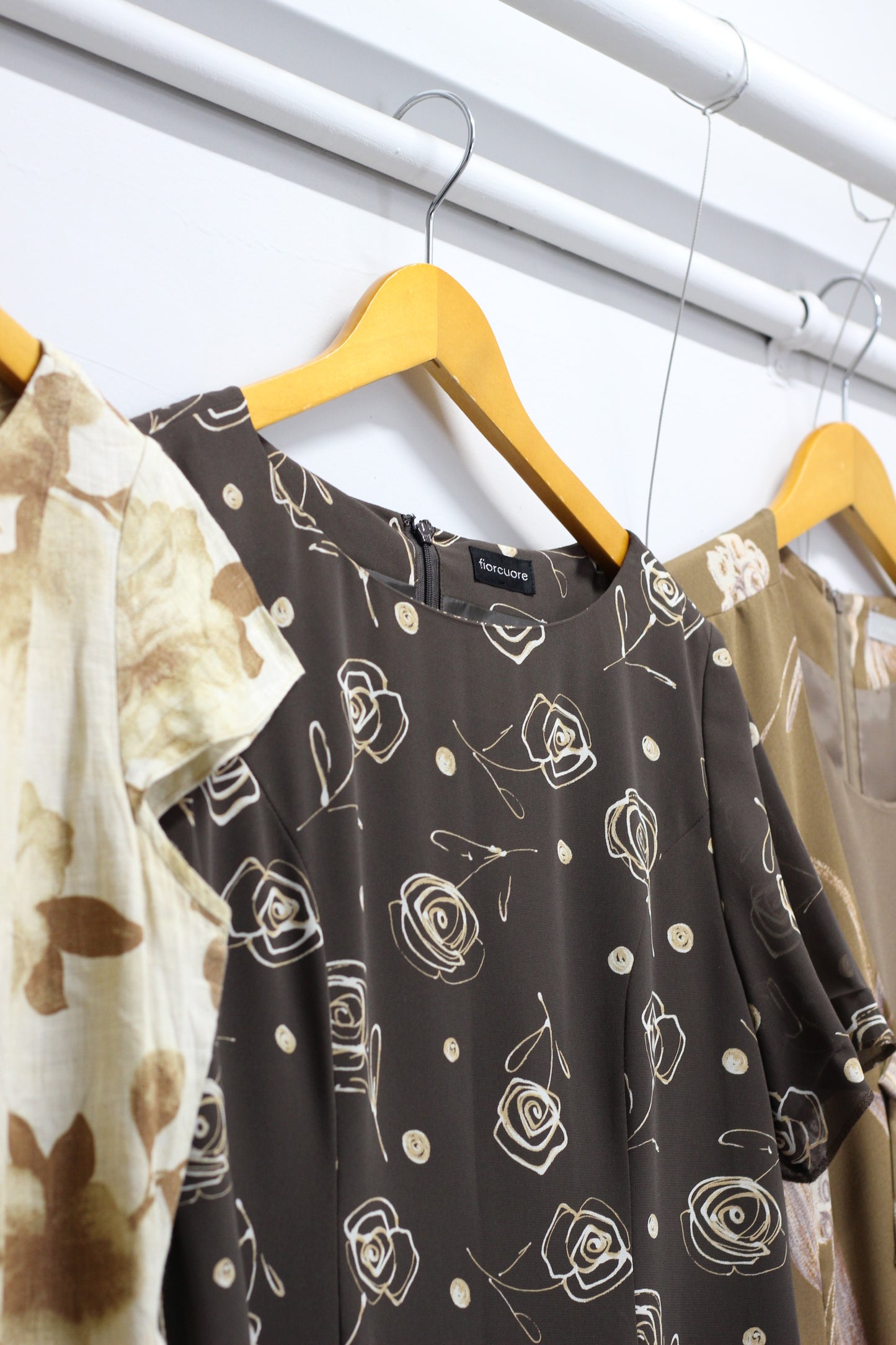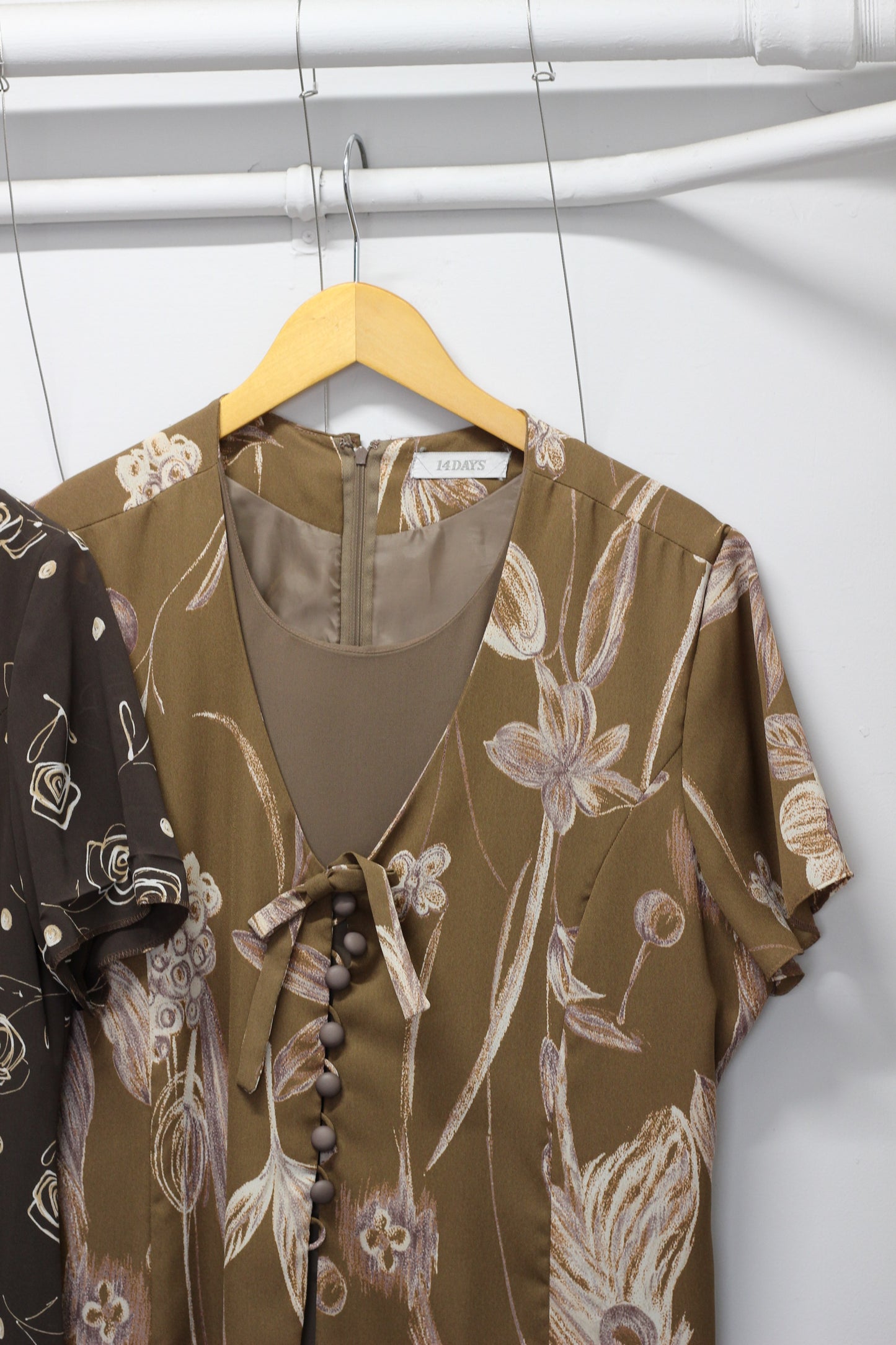 ヴィンテージ ブラウン フラワー 半袖ワンピースを3点セットで販売いたします。 |