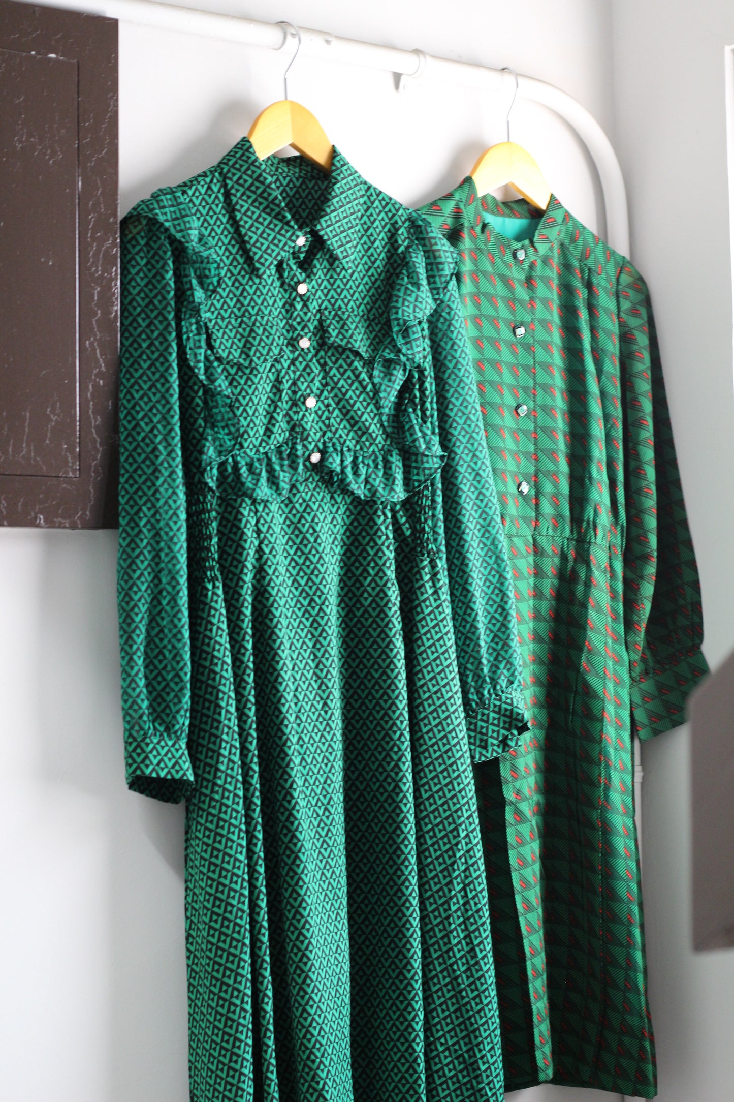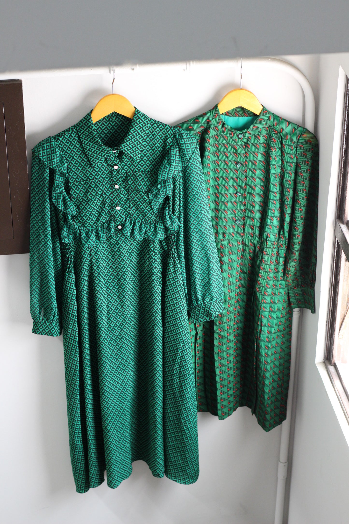 ヴィンテージ グリーン デザイン 長袖ワンピースを2点セットで販売いたします。 |