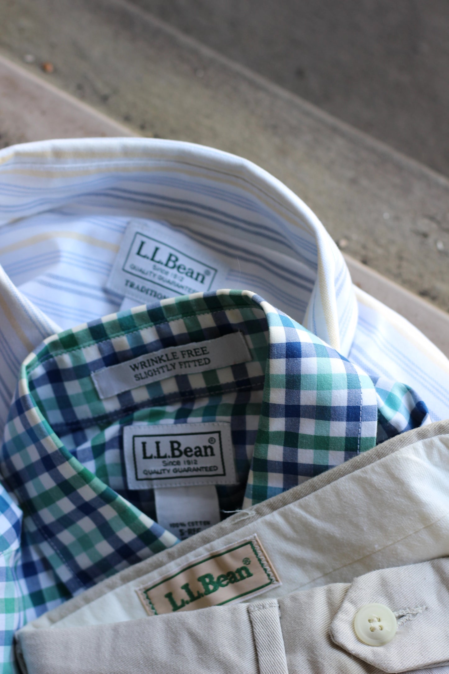□商品コメント | L.L.Bean シャツ & ボトムスを3点セットで販売いたします。 |