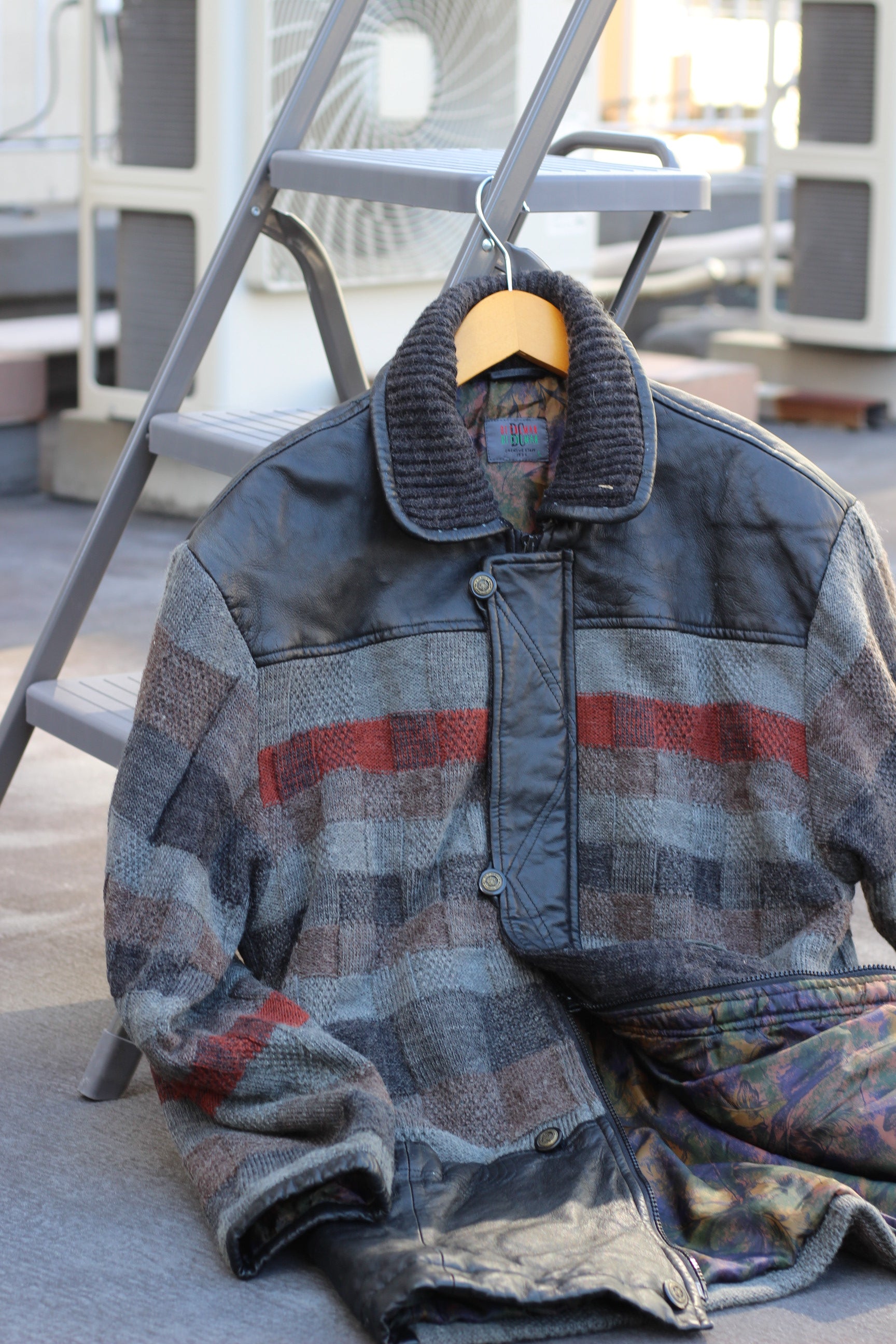 Men's Vintage Wool Knit Leather Jacket x4点