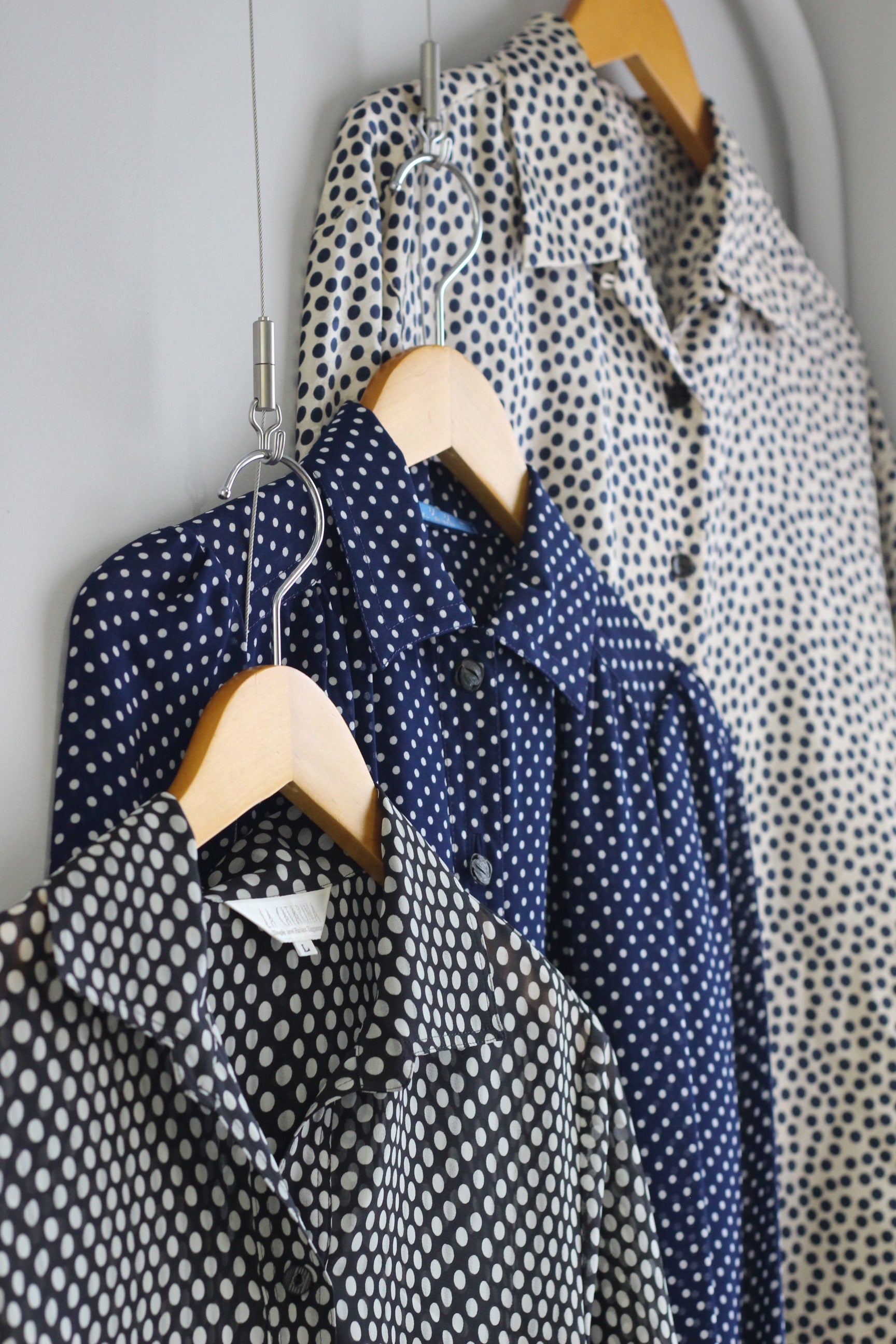 | □商品コメント | ヴィンテージ ドット 長袖ブラウスを3点セットで販売いたします。 |
